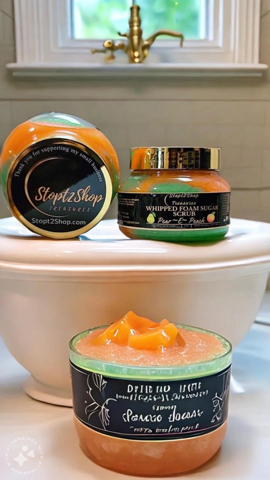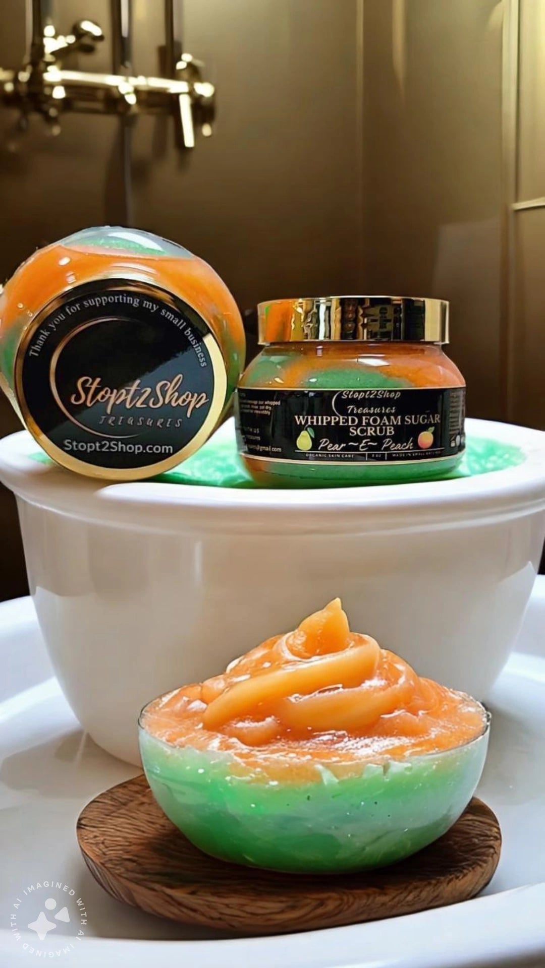🍐🍑 Dive into a fruity spa experience with our Pear ~E~ Peach Sugar Scrub! This delightful blend combines the crispness of pear with the sweetness of peach, exfoliating your skin to perfection. Feel refreshed, revitalized, and ready to glow! 🌟✨ Treat yourself to the ultimate fruity indulgence! 🍐🍑💖